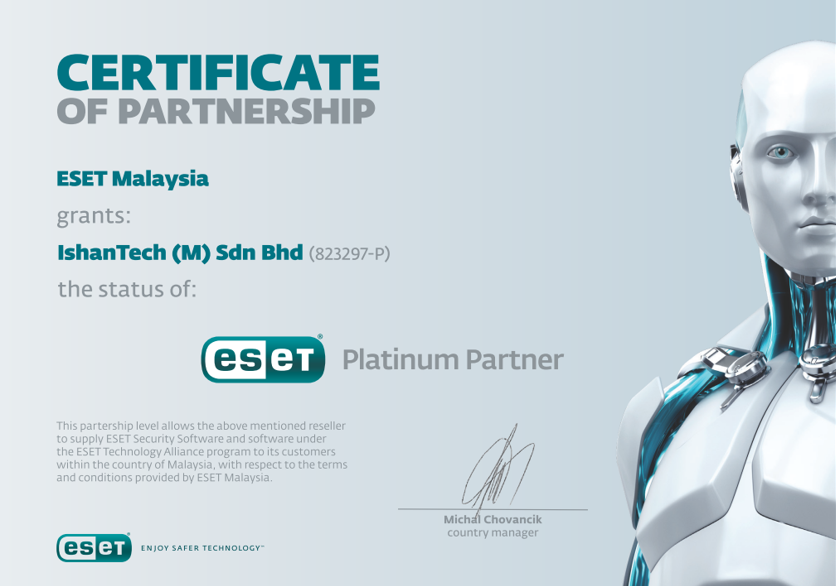 IshanTech (M) Sdn Bhd was founded in 2008 to bring award-winning IT Security solutions to Malaysia and the region. IshanTech’s expertise in cybersecurity predetermined their collaboration with ESET a world class top-notch antivirus protection software as their Exclusive Platinum Partner for Malaysia.